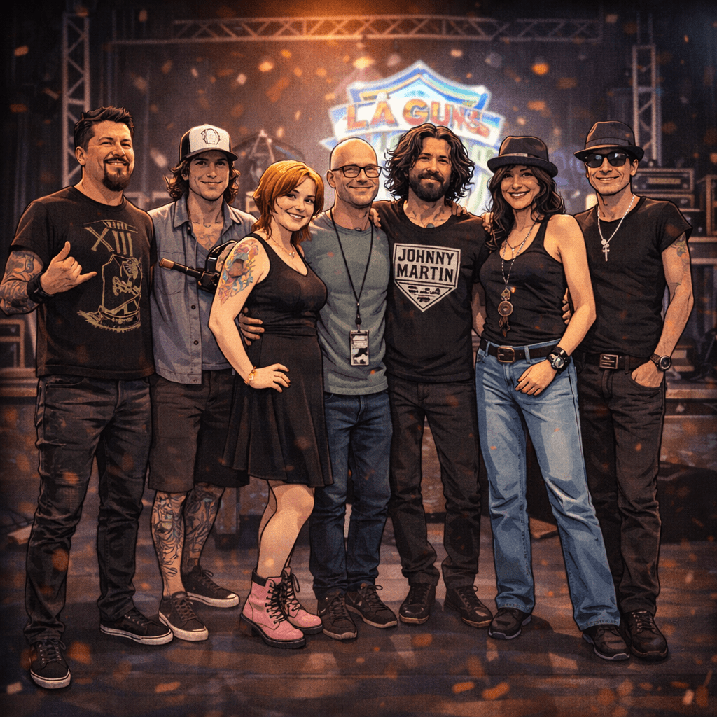 It was one of those nights where the venue lights make everything look a little unreal—black curtains, cables snaking across the floor, road cases stacked like little steel monuments. LA Guns had just done what LA Guns does: they turned the room into a pressure system. Not just loud—alive. And when it ended, the crowd felt like it was still buzzing.